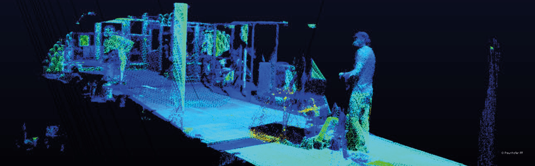 Durch die Nutzung neuartiger LiDAR-Sensoren, die eine hohe Abdeckung des Field of View (FoV) erreichen und dynamisch 3D-Punktewolken generieren, können Prozessabläufe auch in größeren Arbeitsräumen analysiert werden.
