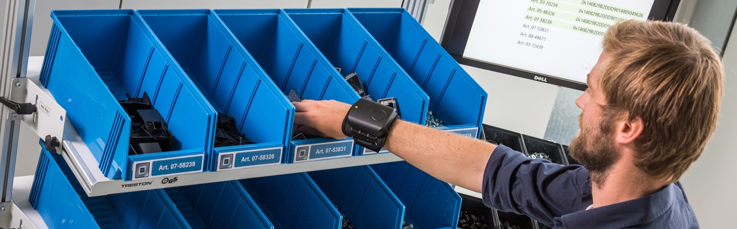 Forscher des Fraunhofer IFF haben mit dem RFID-Armband eine mobile Wearable-Lösung entwickelt, mit der Objekte oder Greifbereiche in Kommissionier- oder Montageprozessen schnell und automatisch identifiziert werden können. Zusätzliche Prozessschritte durch die Nutzung von Handheld-Readern zur Prozessbestätigung werden bei der Nutzung des RFID-Armbands vermieden.